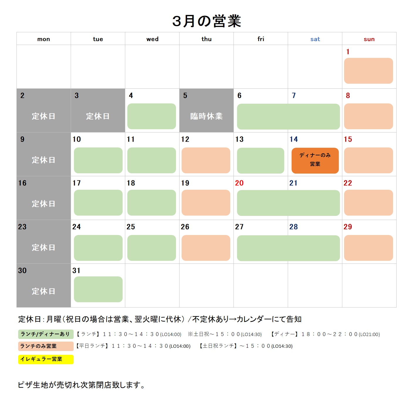 ※ピザ生地が無くなり次第閉店致します。