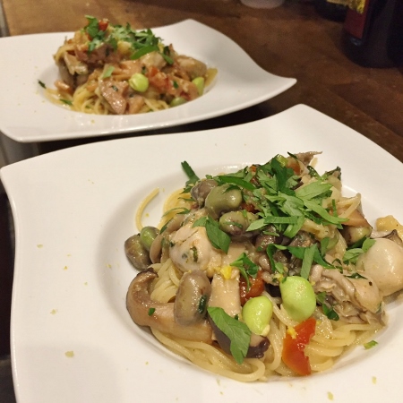 広島産牡蠣と色々野菜のパスタをご用意しております。
