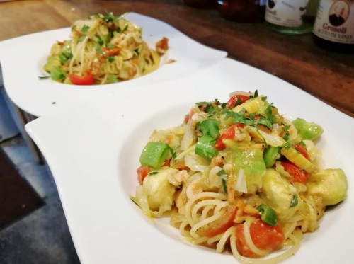 静岡産桜えびと有機アボカドのペペロンチーノ
