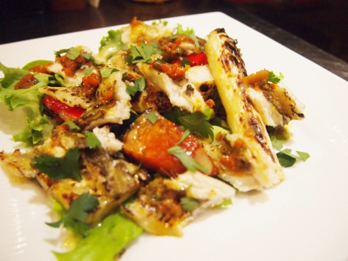 穴子の白焼きと季節野菜の温かいサラダ、プッタネスカソース