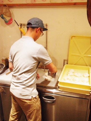 本日も営業終了後、ピザ生地の仕込中。