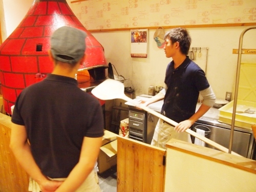 たくちゃんがピザを焼く練習をします。