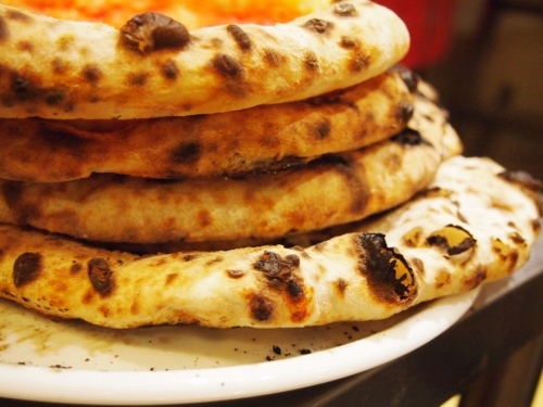 無数に焼き上がった具なしのピザ生地。