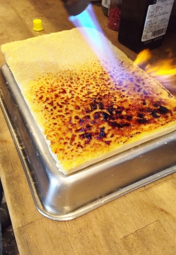 それを凍らせて、ランチが始まる前に表面を炙っておきます。