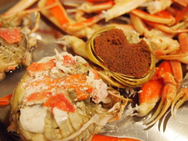 セコ蟹の最大の魅力は、この外子(左)と内子(右)。さらにコクのあるミソ。